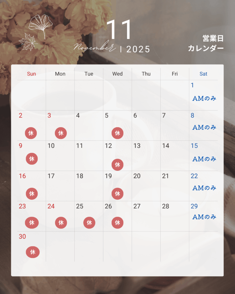 11月25日は院長公務の為、お休みをいただきます。よろしくお願いいたします(*‘∀‘)